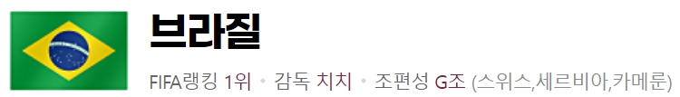 이번 대회 강력한 우승후보인 남미의 또다른 맹주 아르헨티나는 복병 사우디아라비아에게 충격의 패배를 당했습니다. 또 다른 우승후보인 브라질 입장예서는 예방 주사를 맞은 듯한 느낌을 강하게 받을 것으로 보여 더욱 기대가 됩니다. 현재 세계랭킹 1위인 브라질은 카세미루, 파비뉴 등의 미드필더는 물론 네이마르, 제주스, 하피냐가 이끄는 공격진은 세계 최강의 자리에 근접해 있습니다.