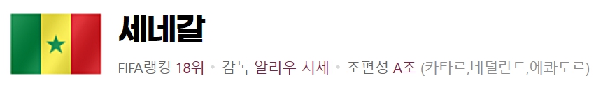 네덜란드에 2대 0 패배를 기록한 세네갈이지만 실제 경기내용을 보면 경기내용 보다 골 차이가 컸다는 평가가 많습니다. 2라운드 진출을 위해서는 남은 경기인 개최국 카타르를 비롯하여 중남미의 다크호스 에콰도르와 반드시 승리가 필요하기 때문에 이번 경기에 실수는 용납되지 않을 것입니다.
