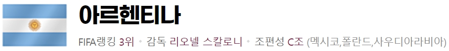 이번 대회 강력한 우승후보인 아르헨티나는 초장에 난적도 아니고 전혀 예상하지 못한 사우디아라비아에게 패하며 메시의 라스트 댄스라 하더라도 조기 탈락도 가능한 상황으로 몰리고 말았습니다. 코파아메리카에서도 우승하며 기세를 올린 아르헨티나지만 남아있는 경기인 멕시코, 폴란드와의 경기는 상당히 부담스럽습니다.