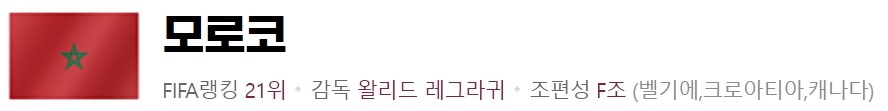 탄탄한 조직력을 바탕으로 하는 모로코 역시 지난 경기에서 크로아티아에게 무승부를 선사하며 만만치 않은 전력임을 과시했습니다. F조를 통틀더라도 첫 경기에서 벨기에의 한 골만 나왔던 만큼 이번 경기에도 팽팽한 조직력을 바탕으로 시합에 나설 것으로 보입니다.