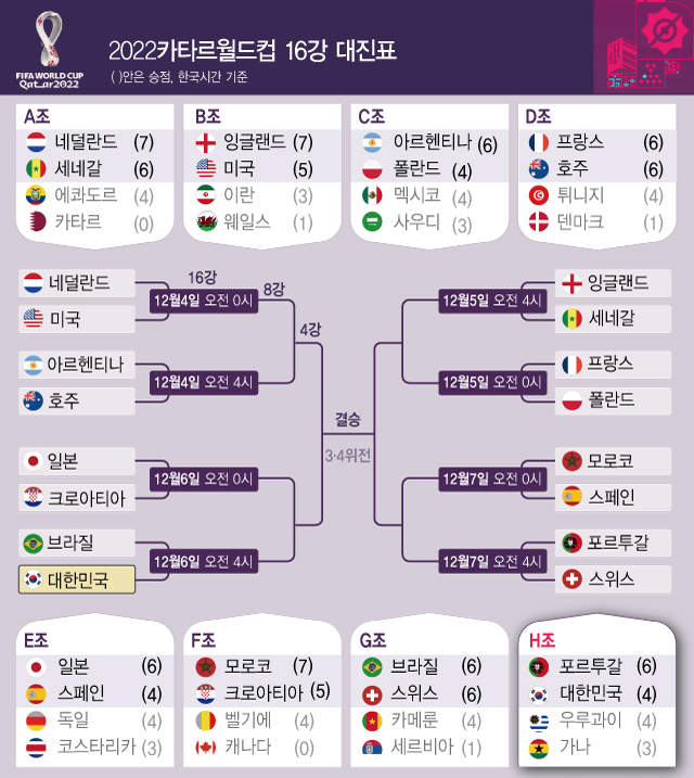 16강 경기는 우리나라 시간으로 12월 4일 00시부터 시작해 12월 7일 04시까지 총 8경기가 열리며 8강은 10일과 11일 양일에 걸쳐 열릴 예정입니다.
