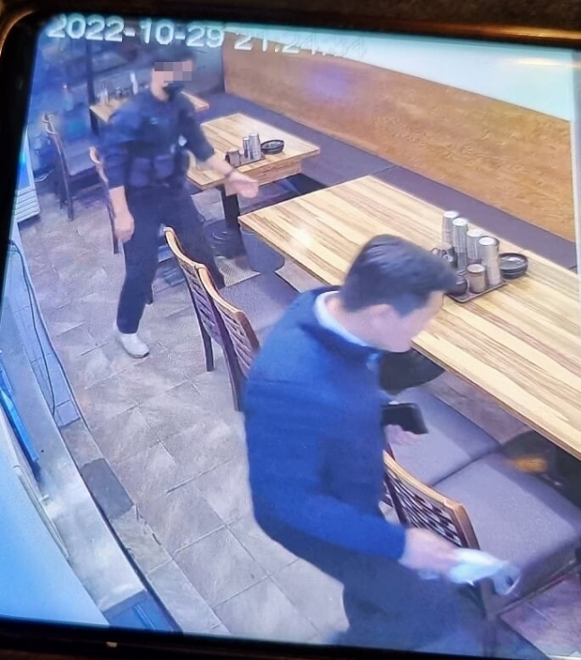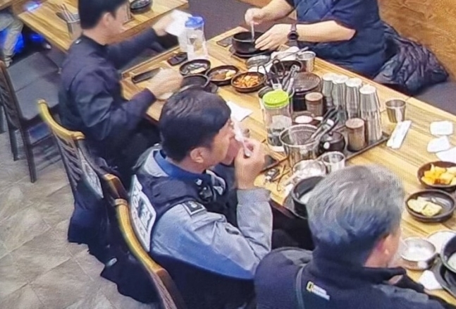 할로윈 당일 늑장과 부실 지휘로 비판을 받고 있는데 당일 현장에 긴급 보고를 받던 시점에 설렁탕집에서 용산서 정보과장과 함께 저녁식사 중이었던 것으로 확인되어 당일 대응이 미흡했다라는 의혹을 받고 있습니다. 실제 참사가 발생하기 직전인 2124분부터 2127분의 상황이 담겼는데 식사 중에 서장은 이태원 현장이 긴급 상황이라는 보고를 받은 것으로 추정되지만 별다른 다급함은 없었던 것으로 보였습니다.