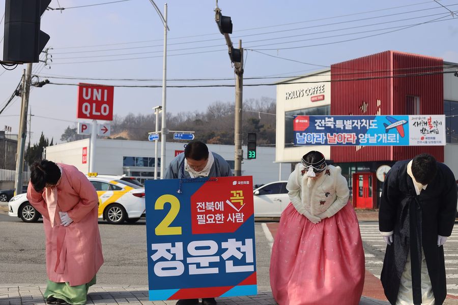 전북지역 최대 격전지인 전주을 선거구에서는 진보당 강성희 후보, 더불어민주당 이성윤 후보, 그리고 국민의힘 정운천 후보가 경쟁하고 있습니다. 이 세 후보는 각각 절대 사수, 탈환, 재탈환을 위해 사력을 다하고 있습니다. 정운천 후보는 전북특별자치도 출범을 위한 근거법 마련하고 이차전지 특화단지 지정을 이뤄내는 등의 성과를 내며 활동하고 있습니다. 이러한 활동을 통해 그는 전북자치도의 새로운 시대를 열어가겠다는 각오를 밝혔습니다.