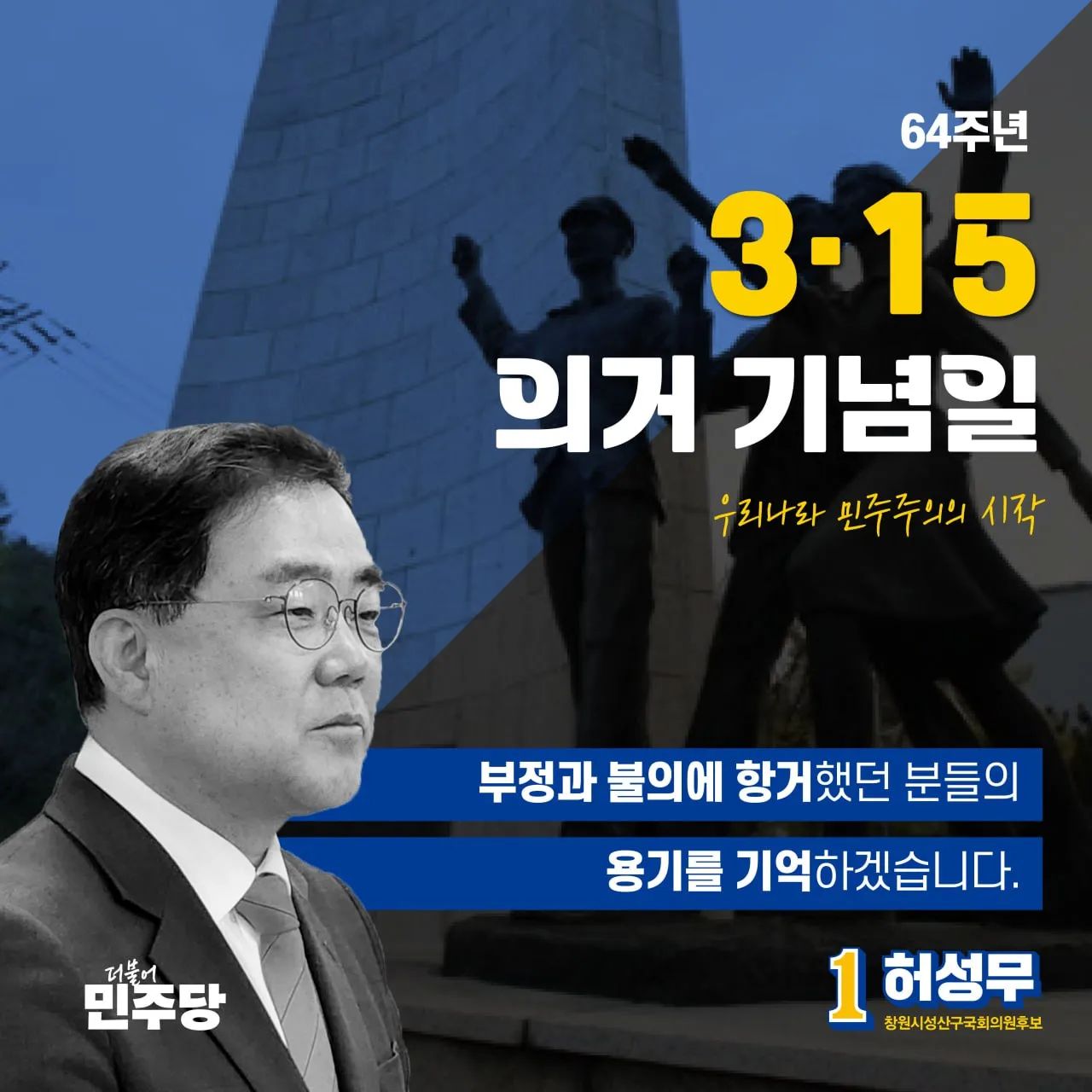 허성무 후보는 대한민국을 완전히 새롭게 바꾸기 위한 통합의 큰 정치를 주장하였습니다3. 그는 범민주진보세력 단일화로 반드시 총선에서 승리하겠다는 입장을 밝혔습니다. 아울러 허성무 후보는 지역의 정당, 정파 간에 논의와 토론을 통해 대안을 모색하는 협의체를 만들겠다고 말하였습니다. 허성무 후보는 지구당 부활을 통한 지역민의 의견수렴과 대변이 필요하다고 주장하였습니다 . 허성무 후보는 ICT, IoT, AI가 융합한 세계 1등 첨단 제조업 도시 창원을 만들어, 세계 최고의 경쟁력을 갖춘 국제도시 창원을 설계하는 일에 모든 역량을 쏟겠다는 의지를 내비쳤습니다. 뿐만 아니라, 이번 총선을 윤석열 정권 심판으로 규정하며 야권 후보 단일화를 강조하였습니다.