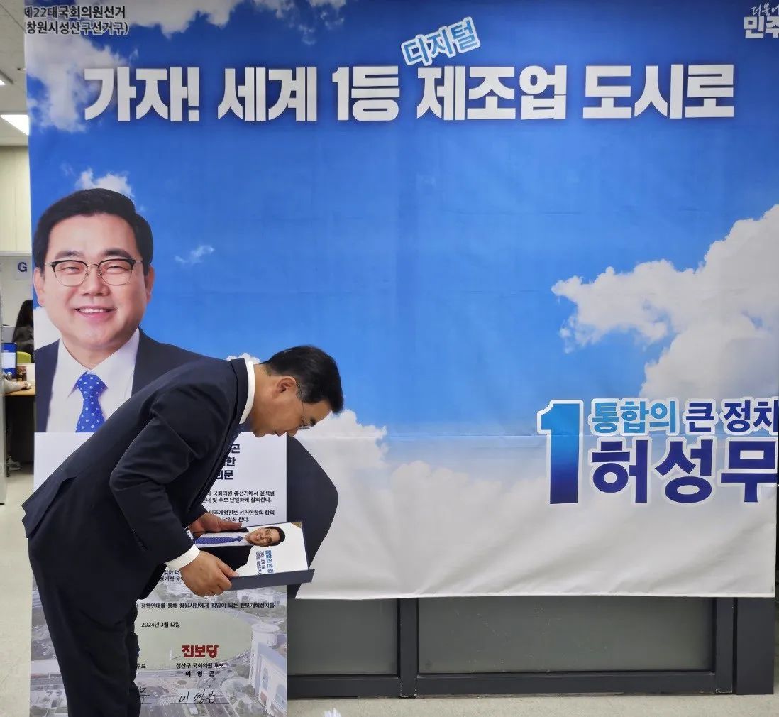 허성무 후보는 대한민국을 완전히 새롭게 바꾸기 위한 통합의 큰 정치를 주장하였습니다3. 그는 범민주진보세력 단일화로 반드시 총선에서 승리하겠다는 입장을 밝혔습니다. 아울러 허성무 후보는 지역의 정당, 정파 간에 논의와 토론을 통해 대안을 모색하는 협의체를 만들겠다고 말하였습니다. 허성무 후보는 지구당 부활을 통한 지역민의 의견수렴과 대변이 필요하다고 주장하였습니다 . 허성무 후보는 ICT, IoT, AI가 융합한 세계 1등 첨단 제조업 도시 창원을 만들어, 세계 최고의 경쟁력을 갖춘 국제도시 창원을 설계하는 일에 모든 역량을 쏟겠다는 의지를 내비쳤습니다. 뿐만 아니라, 이번 총선을 윤석열 정권 심판으로 규정하며 야권 후보 단일화를 강조하였습니다.