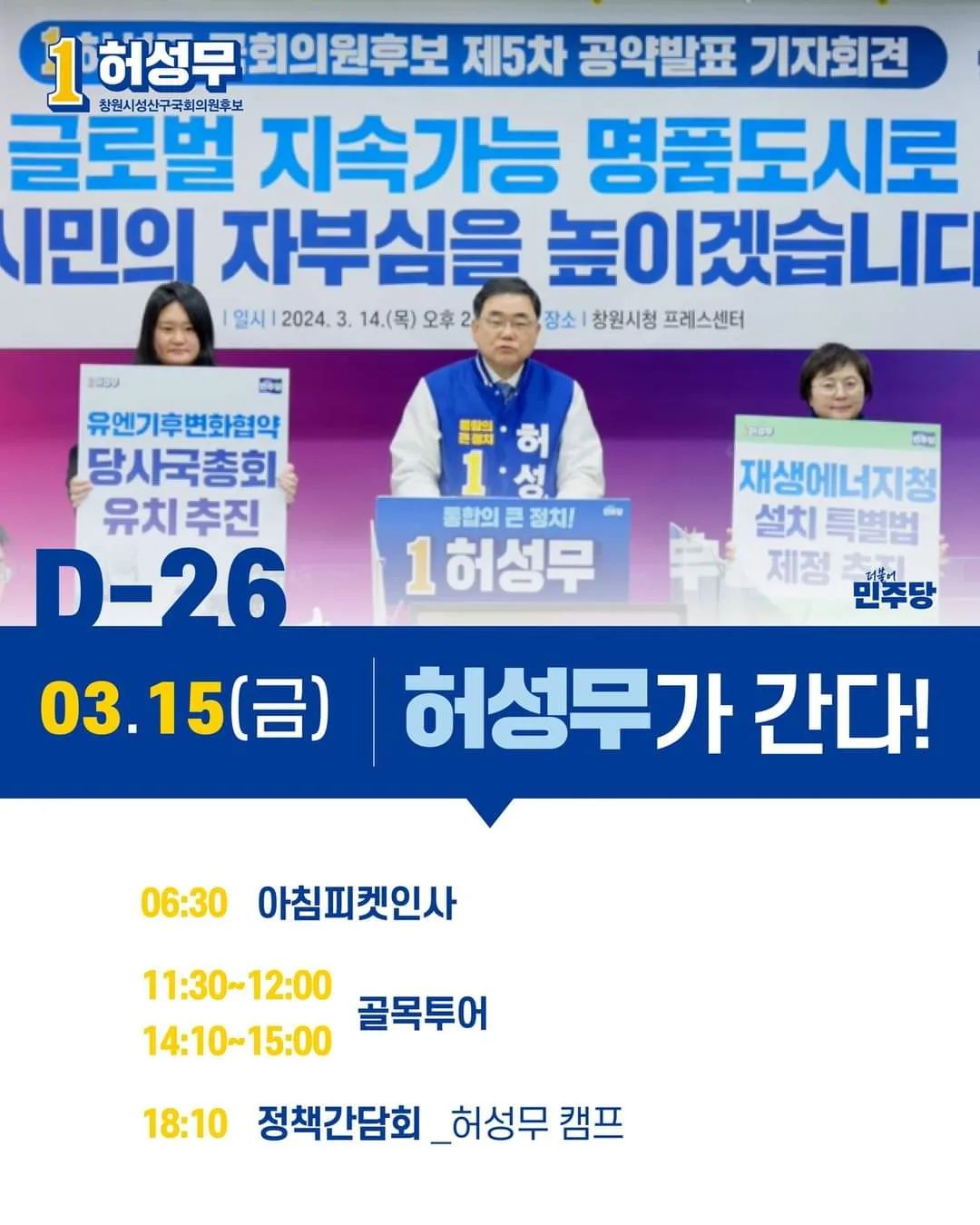 또한, 허 후보는 S-BRT 공사와 관련하여 현 시장 체제의 무능을 지적하였습니다. 허 후보는 창원시 성산구의 노후화, 일자리 문제, 재건축 등의 지역 문제를 입법을 통해 해결하겠다고 강조하였습니다. 또한, 허 후보는 윤석열 정권의 심판을 위해 야권 후보 단일화를 강조하였습니다. 이를 위해 허 후보는 여영국 후보와의 실무협상을 즉시 시작하겠다고 밝혔습니다.
