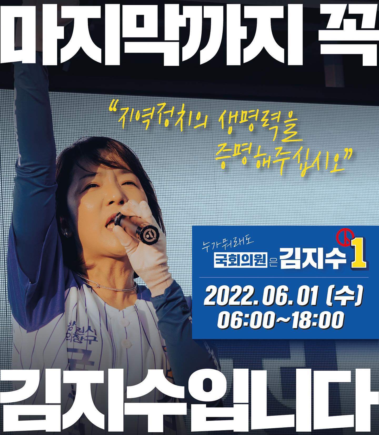 김지수 후보는 약학박사 및 미국약사 출신으로, 11대 경남도의회 전반기 의장, 전국 여성지방의원 네트워크 경남지역대표, 경성대 약학대학 외래교수 등을 역임하였습니다. 2014년 지방선거에서 비례대표 도의원으로 당선된 뒤 재선 지역구 도의원이 되었으며 지난 2018년 경남도의회 첫 여성 40대 도의회 의장으로 주목받았습니다. 현재는 더불어민주당 창원의창구 지역위원장을 맡고 있습니다. 김지수 후보는 지역에서 성장한 정치인으로, 유권자들은 외부에서 이것저것 다하고, 노후에 새로운 취미생활을 하자는 것도 아니고, 생면부지 이곳으로 온 후보를 긍정적으로 생각하지 않을 것이라고 강조하였습니다.