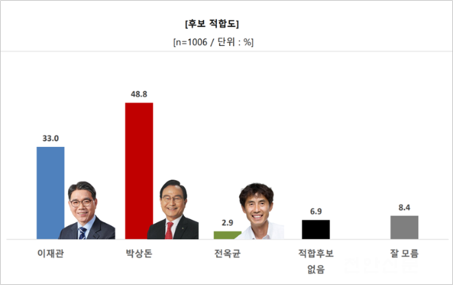 천안시장 후보 이재관 박상돈 여론조사 결과 정리