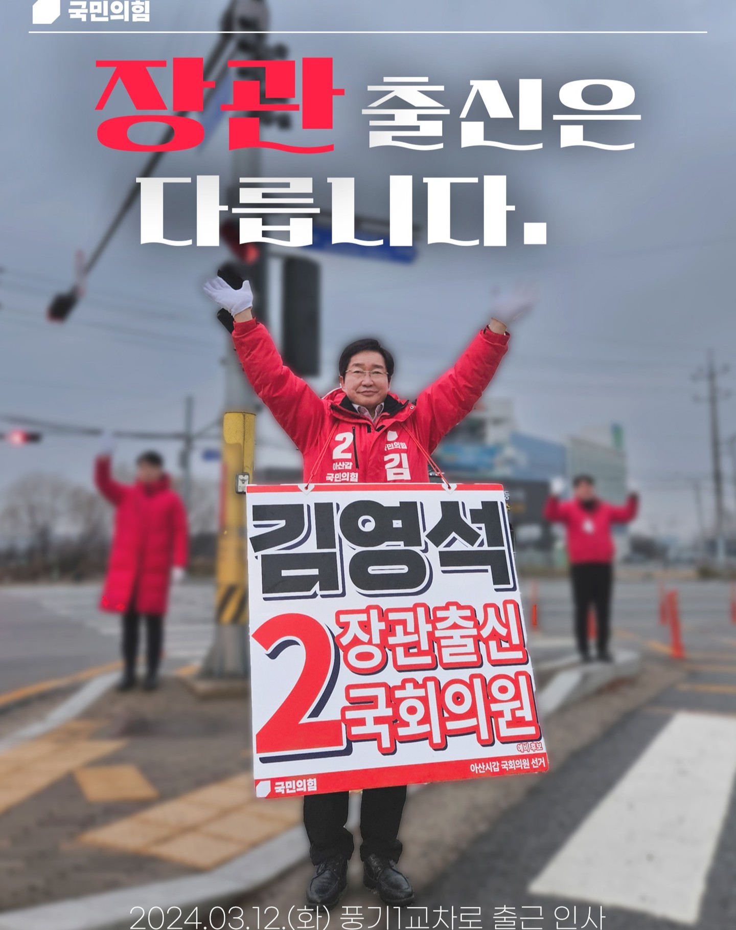 김영석 후보는 충남 아산시갑 지역구에서 국민의힘 국회의원으로 활동하고 있습니다. 그는 제22대 총선에서 국민의힘 아산시갑 선거구 예비후보로 확정되었습니다. 그의 주요 활동으로는 국민의힘에 입당하고, 현충사와 충무공 묘소를 참배하고 헌화하면서, 충무공의 헌신과 희생 정신을 인생의 최고가치로 삼고 실천하기 위한 결의를 다지는 것으로 정치인의 첫 걸음을 시작하였습니다.