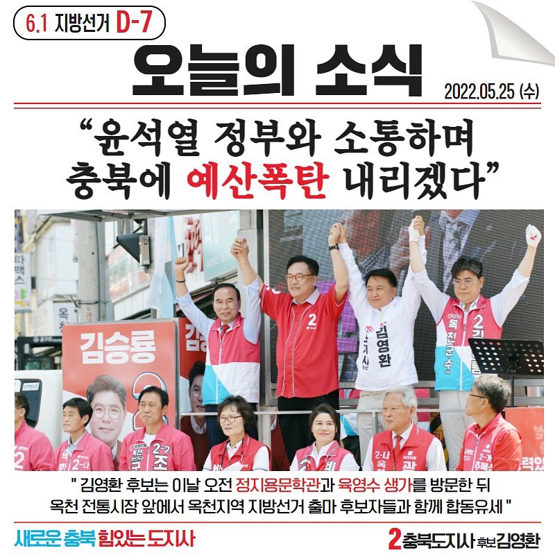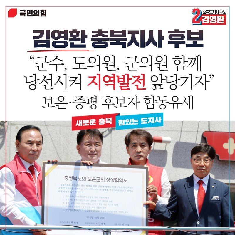 충복도지사 선거는 지난 선거에서부터 여당의 강세지역이 되었는데 민선 1기에서부터 6회까지는 야당 후보가 승리한 여당 필패 지역이었습니다. 보통 중간성격이 강한 지방선거였기 때문에 그 의의가 있었으나 이번처럼 대선에 바짝 붙어서 한 지방선거다 보니 충북은 대세에 힘을 몰아 준 형국이 되었습니다. 이번에 알아볼 충북도지사역시 개표 초반부터 앞서나가 승리를 거둔 김영환 충북도지사 당선인은 395,517표로 58.19%의 지지율로 더불어민주당 노영민 후보 284,166표로 41.8%로 앞서며 민선8기 충북지사에 올라가게 되었습니다.