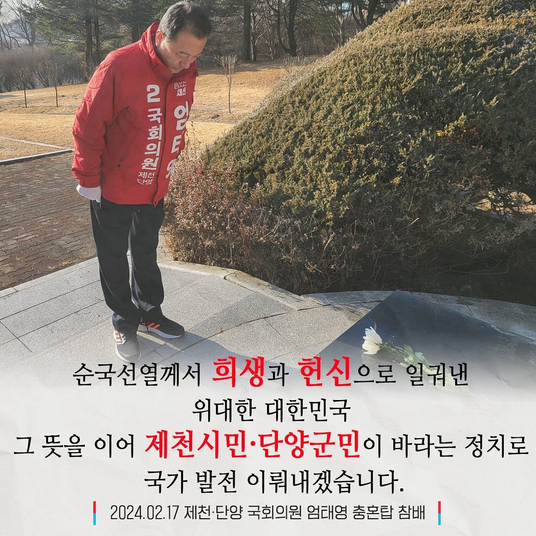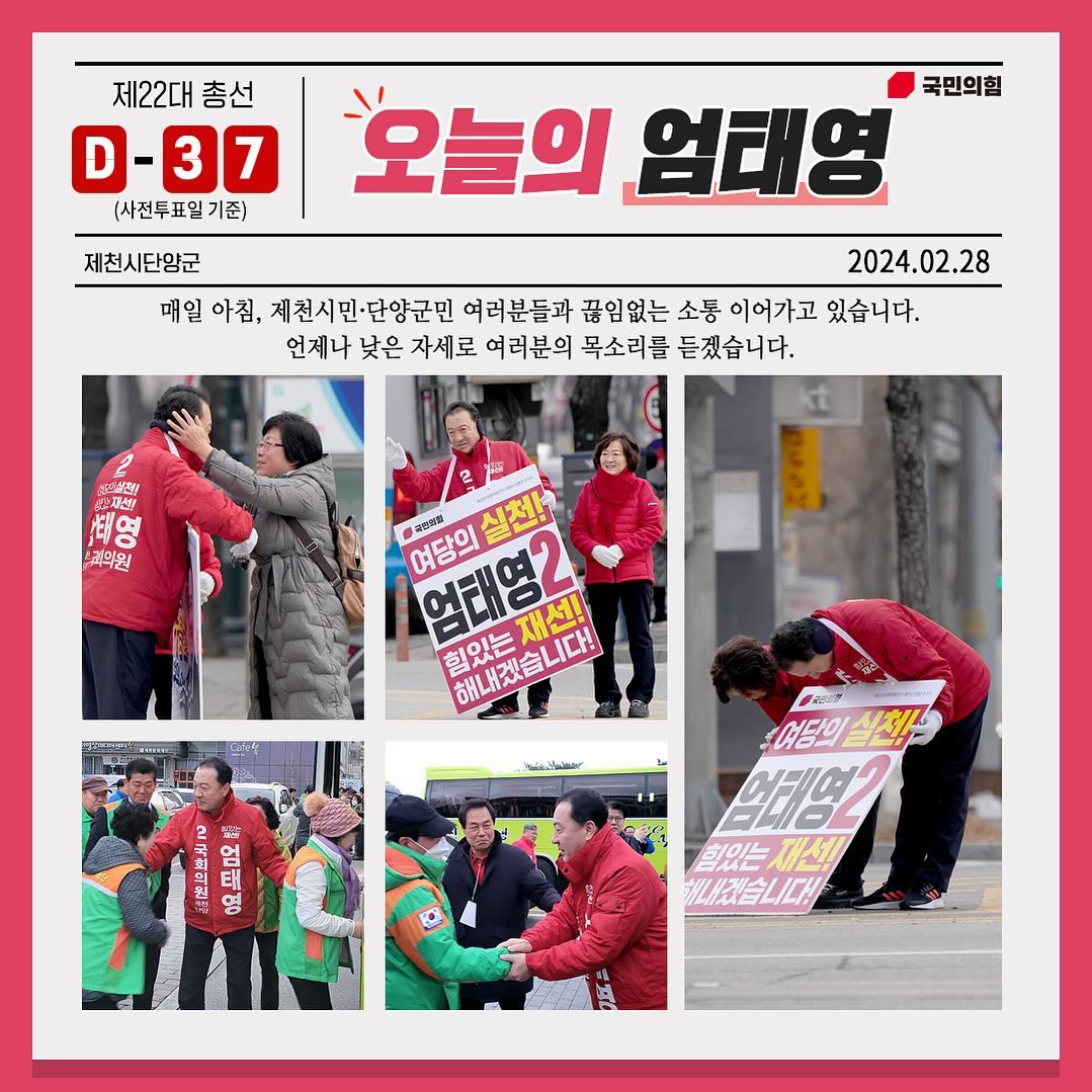 엄 의원은 제천·단양 주민들의 염원인 충북선 고속철도 제천역 경유, 수서(강남)-제천·단양 신중앙선 연결 사업, 수도권 공공기관 제천·단양 이전 등 대형 국책사업들이 차질 없이 추진되기 위해 풍부한 네트워크와 경험을 활용하겠다고 밝혔습니다. 또한, 엄 의원은 제21대 국회에서 국토교통위원회, 윤리특별위원회, 예산결산특별위원회의 위원으로 활동하였으며, 국민의힘 원내부대표를 역임하였습니다. 그는 지역 경제 활성화와 국민 복지 향상을 위한 정책을 추진하는 데 주력하고 있습니다