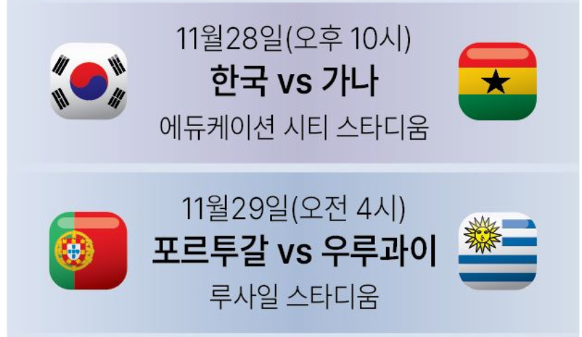 카타르 월드컵 한국 경기시간 1차전 한국-우루과이
