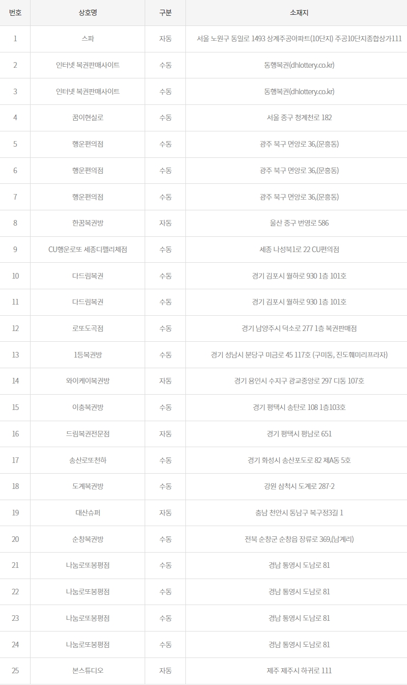25 거제로또판매점 부산 연제구 거제시장로14번길 28 (주)거제시장 112호,120호