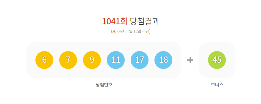 1041회 로또 당첨 등수별 당첨금은 아래와 같습니다. 1041회 로또 당첨번호는 6, 7, 9, 11, 17, 18, 보너스번호 45번으로 나왔습니다. 당첨되신 분들께 축하 인사를 다시 한번 드립니다 정말 축하드려요.