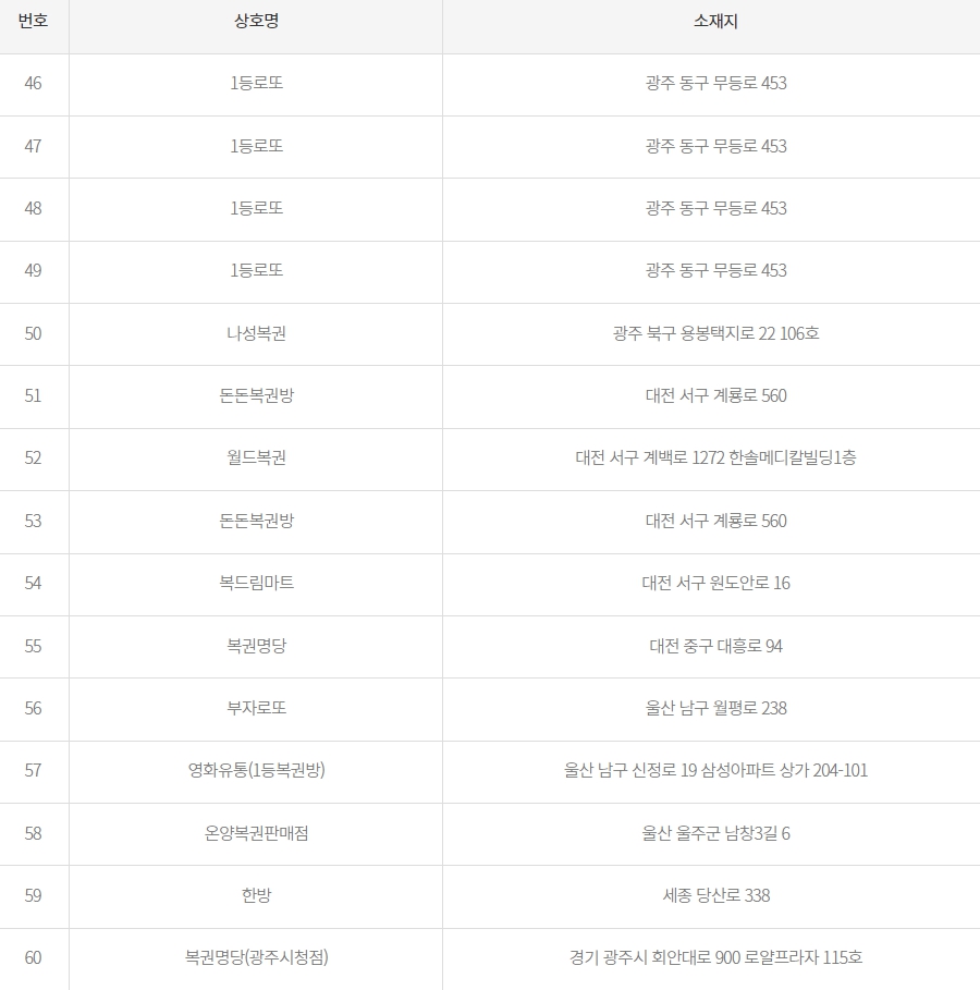 44 행운복권방 광주 광산구 금봉로 95 1층
