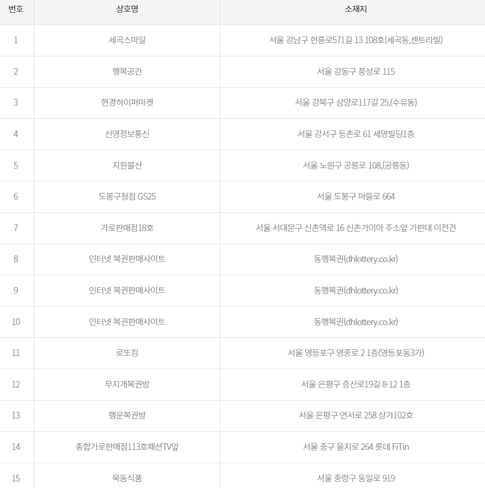 18 대박드림 복권방 부산 북구 효열로 195 유림아파트 상가동 107호