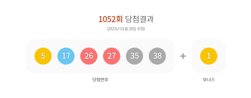1052회 로또 당첨 등수별 당첨금은 아래와 같습니다. 1052회 로또 당첨번호는 5, 17, 26, 27, 35, 38, 보너스번호 1번으로 나왔습니다. 당첨되신 분들께 축하 인사를 다시 한번 드립니다 정말 축하드려요.