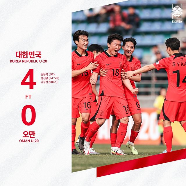 이미 오만과 요르단을 연파하며 마지막 타지키스탄과의 경기에서 비기기만 해도 조1로 8강에 진출할 수 있습니다. 이번 대회에서는 FC서울의 강성진 선수와 포르투칼 포르티모넨스에서 뛰고 있는 김용학 선수가 가장 눈에 띄고 있으며 이제 예선 통과는 당연해 보이고 시선은 더 위로 향하고 있습니다.