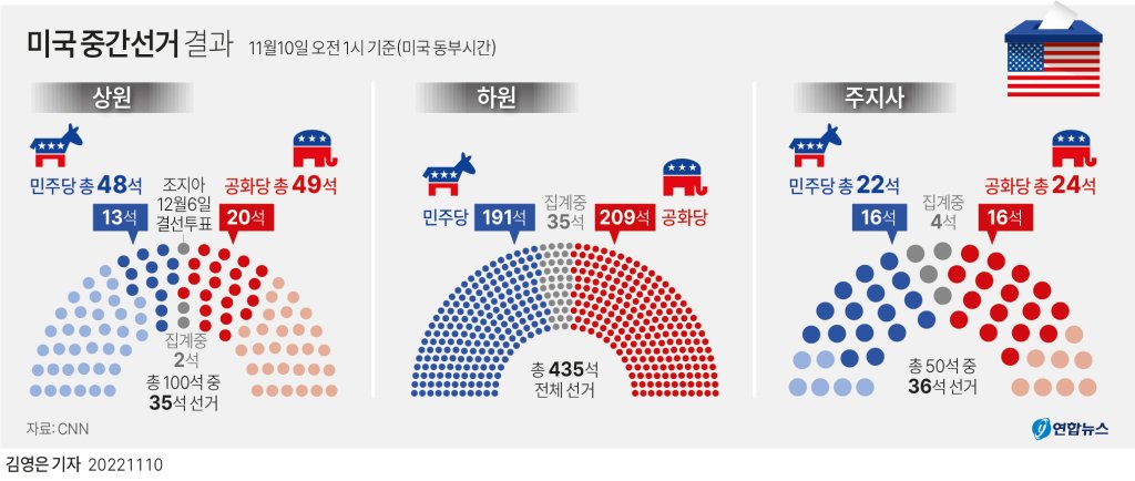 세계의 경제와 정치 중심지인 미국, 어느 나라의 영향력보다도 가장 큰 영향력이 있다고 볼 수 있는 미국 중간선거가 막을 내렸습니다. 하지만 경제가 안좋아지며 트럼프가 이끄는 공화당의 큰 승리가 점쳐졌지만 생각만큼 대승이 아닌 반쪽 짜리 승리다보니 트럼프든 바이든이든 크게 웃는 사람없는 선거 성적표를 받아 반대로 말하면 제3의 정치신인이(우리에게는), 새로운 인물은 나올 것이라는 예상도 나오고 있어 관련 내용을 알아보겠습니다.