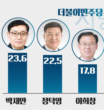 현직 시장이던 이성호 양주시장이 건강 문제로 시정 공백이 생기는 데에 대한 부담감이 있다보니 결국 임기를 얼마남기지 않고 퇴임을 결정하였는데 이러한 결정이 이번 지방선거에 더불어민주당에게는 부담이 될 수도 있다는 느낌입니다. 현직 프리미엄이 있던 양주지만 어쨌든 공석이 되어버린 양주는 더불어민주당은 정성호 국회의원 정책특보 출신 박재만 전 경기도의원, 정덕영 양주시의회 의장, 이희창 전 의장이 대결을 벌이고 있으며 이번 조사에서 실시한 적합도 조사에서는 박재만 전 경기도의회 도시환경위원장 23.6%, 정덕영 양주시의회 의장이 22.5%, 그 뒤를 이희창 전 의장이 17.8%로 뒤를 쫓고 있습니다.