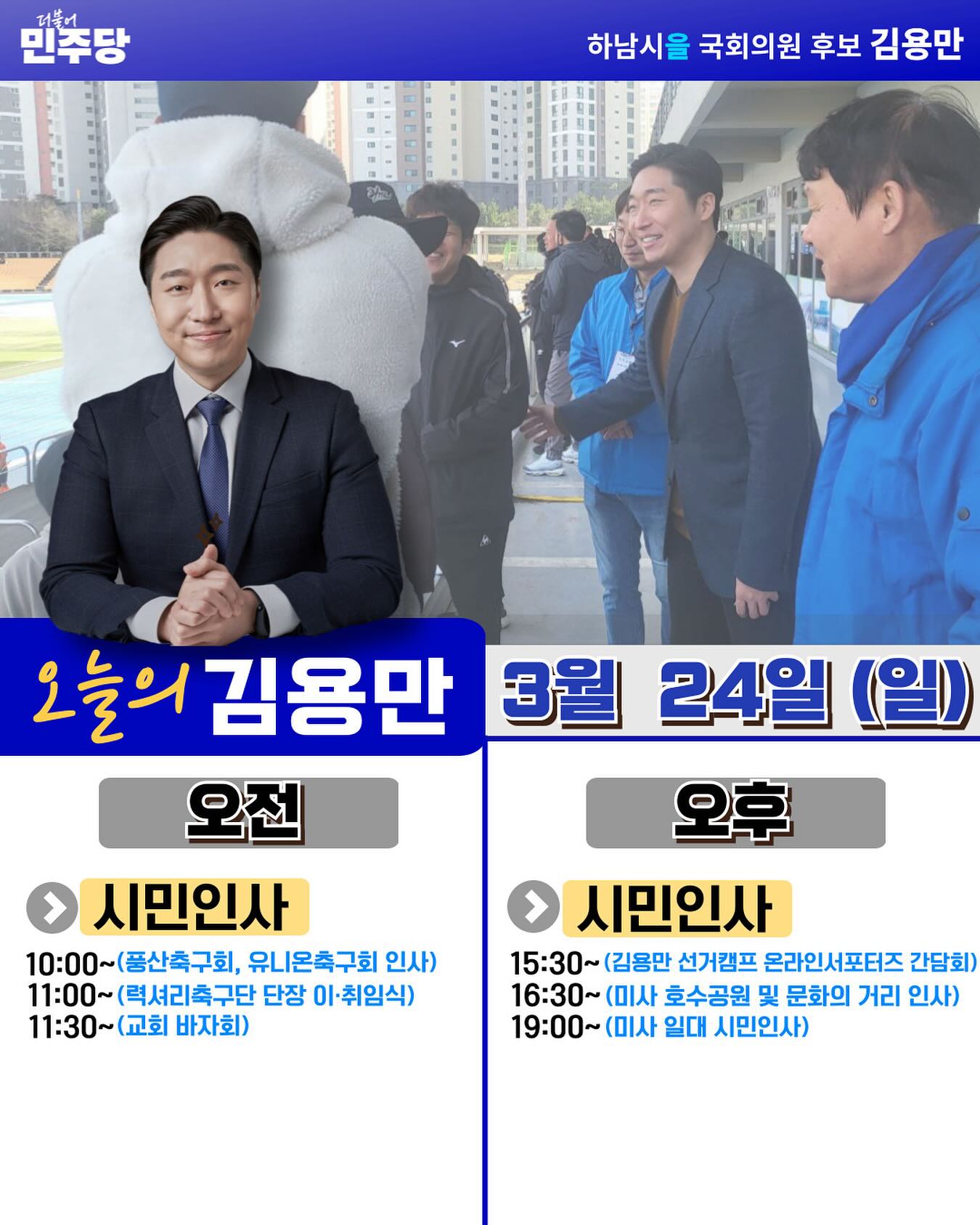 김용만 후보는 더불어민주당에서 4월 총선 8호 영입 인재로 선정되었습니다. 그는 경기 하남시을 지역구에 전략공천되었는데, 이 지역은 현역 국회의원인 민주당 최종윤 의원이 총선 불출마를 선언한 지역으로, 위례신도시, 미사강변신도시 등 신도시 입주로 인한 인구 증가로 지난 29일 국회 본회의에서 통과된 선거구 획정안에 의해 갑∙을로 분구되었습니다.
