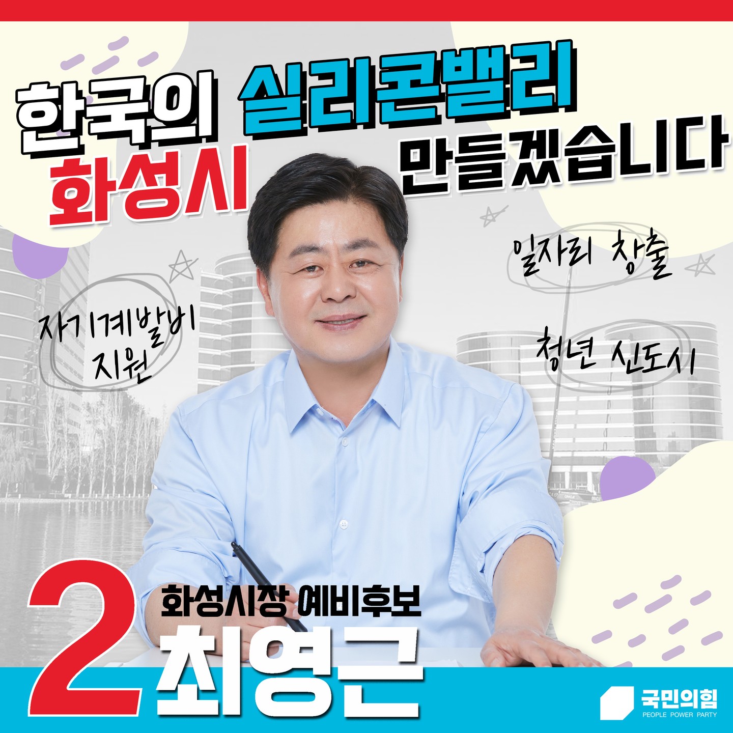 최영근 후보는 경기 화성병 지역구에서 국민의힘의 국회의원 후보로 활동하고 있습니다. 그는 이 지역에서의 선거에서 반도체 산업의 경쟁력을 강화하겠다는 입장을 밝혔습니다. 그는 “군공항의 공항이라는 단어가 입에 오르내리지 않도록 원천봉쇄, 신안선, 신분당선 조기완공, 화성 서부지역에 대학병원 급 국립병원을 조기 설립, 농촌 지역에 대한 꾸준한 관심과 실질적으로 민생에 도움이 되는 행정 결단 촉구” 등을 주요 공약으로 내세웠습니다.