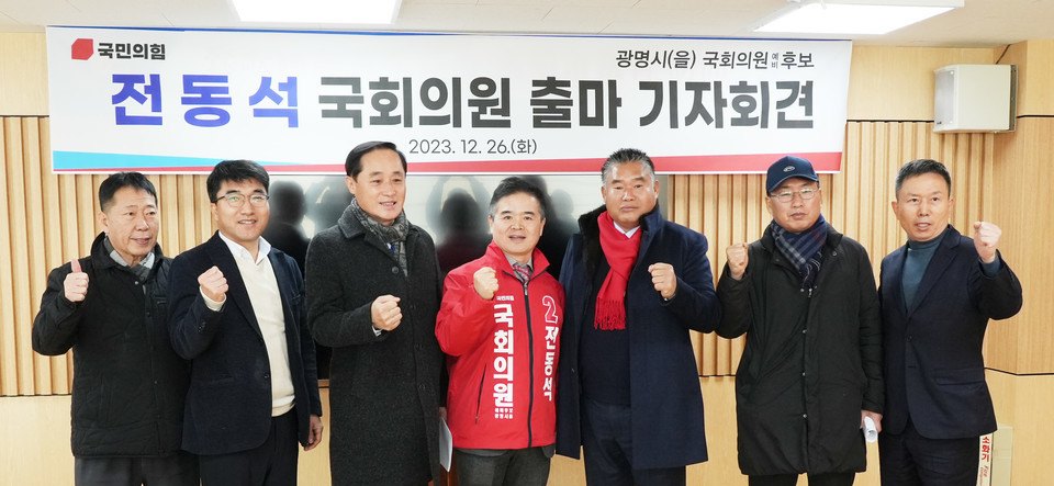 전동석은 국민의힘 당원으로, 2024년 2월 17일에 광명을 지역구에서 국회의원 선거 출마를 선언하였습니다. 그는 "국가를 위해 광명을 위해 헌신하려 출사표를 던진다"고 말하며, 윤석열 정부가 성공하여 국민이 편안한 나라가 될 수 있도록, 나라의 살림살이를 꼼꼼히 살펴 튼튼한 경제를 만드는데 헌신하겠다고 밝혔습니다. 그는 과거 국민대학교 국어국문학과를 졸업하였고, 고려대학교 대학원에서 정책학 석사 학위를 받았습니다. 또한, 그는 경기도의원, 경기도의회 한나라당 수석대변인, 경기도지사 언론정책 보좌관, 경기일보 정치부 기자 등 다양한 직책을 역임하였습니다. 전동석은 국민의힘 당원들과 함께 광명시의 미래를 위해 노력하고 있습니다.
