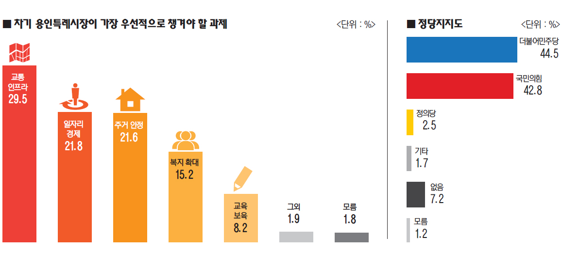 당초 지방선거는 지방 일꾼을 뽑는다는 의미가 강했지만 대선 이후 석 달만 신임 대통령 임기 시작 후 한달도 채 지나지 않은 시점인 6월 1일에 실시되는 만큼 정치적으로 관심이 상당히 높은 선거라고 볼 수 있습니다. 거기에 더해 여야가 검찰개혁 이슈로 정쟁이 심화되고 있어 이번 선거 결과에 따라 정치적으로 큰 지각변동이 생길 것으로 보입니다. 그래서 여야 모두 지방선거 공천에 공을 들이고 있는데 특례시로 거듭난 용인시장 후보 여론조사가 발표되어 관련 내용을 자세히 알아보겠습니다.