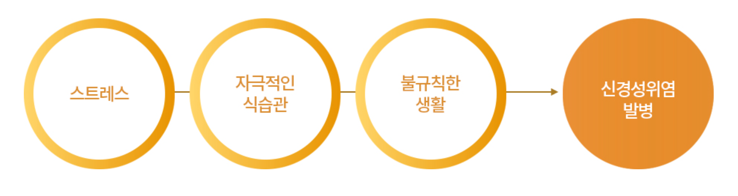 3. 신경성 위염 역시 현대인들에게 피할 수 없는 증상으로 과도한 업두로 인한 정신적 스트레스와 더불어 과로가 겹치면서 우리몸의 자율 신경이 균형을 잃으면 발생하는 위염으로 자율 신경이 균형을 잃으면 위산 과다 분비로 인하여 또 다른 통증과 속 쓰림 등이 유발될 수 있습니다.