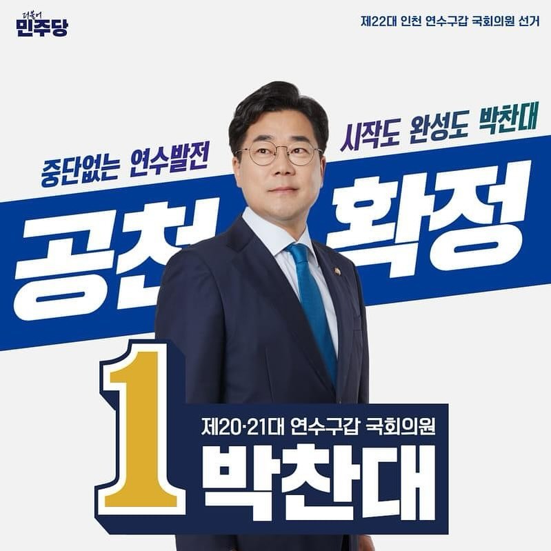 인천광역시 연수갑 지역구는 대한민국의 국회의원 선거구로, 인천광역시 연수구의 일부를 관할하고 있으며 해당 지역구의 현 국회의원은 더불어민주당 박찬대 (2선, 2016년~)의원이 연달아 재선에 성공한 지역입니다. 따라서 박찬대 후보 입장에서는 현역 프리미엄으로 3선에 도전하게 되며 그간 지역에서 다양한 활동을 추진하였습니다. 후보가 추진한 다양한 활동들을 살펴보면 크게 교통 측면에서는 인천발KTX, GTX-B노선 수인선 정차 추진, 인천도시철도 2호선 주안-연수 연장 추진 등이며 연수구 역시 주택노후화가 심각해지는 상황으로 국회에서 노후신도시 재생 및 개선을 위한 특별법을 통과시킨 바 있습니다.