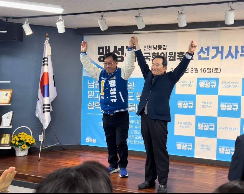 더불어민주당의 맹성규 후보는 인천 남동구갑에서 국회의원으로 활동하고 있습니다. 그는 이번 총선이 국민을 무시하고 민생을 외면하는 윤석열 정권을 심판하는 선거라고 주장하였습니다2. 그는 이번 선거를 통해 국민의 의지를 나타내는 계기가 될 것이라고 밝혔습니다. 맹성규 후보는 전세사기, 순살아파트 등 민생문제 해결에 주력하겠다고 전했습니다. 그는 이러한 문제들을 해결하기 위해 국회에서 전세사기특별법 통과를 주도하였습니다. 또한, LH 부실시공 아파트 피해자 보상이 원만히 이뤄질 수 있도록 앞장서 왔습니다 맹성규 후보는 국민의힘 소속으로 출마를 예정하는 예비후보 4명과 가상대결에서 모두 앞선다는 결과가 나왔습니다4. 이는 그가 지역구에서 강력한 지지를 받고 있음을 보여줍니다.