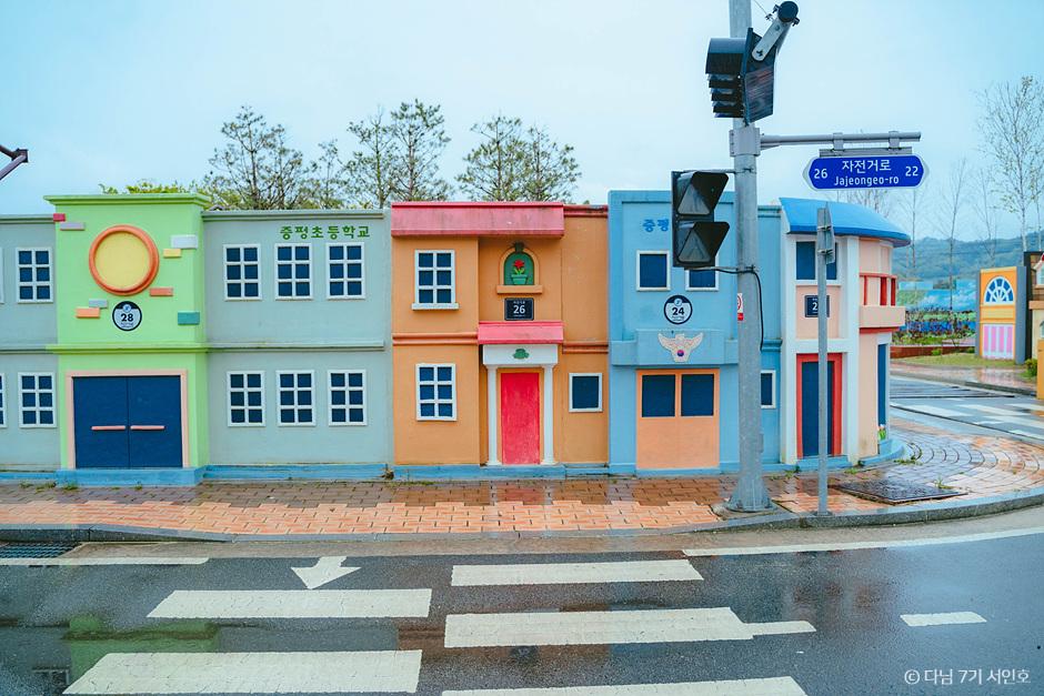 증평자전거공원은 자전거를 테마로 한 이색 테마공원입니다. 이곳은 우체국, 소방서, 약국, 철길 등 증평군을 축소해 놓은 듯한 미니어처 마을이 조성되어 있어 마치 소인국을 여행하는 듯한 느낌을 줍니다. 덕분에 사진 찍기에도 좋은 장소입니다.