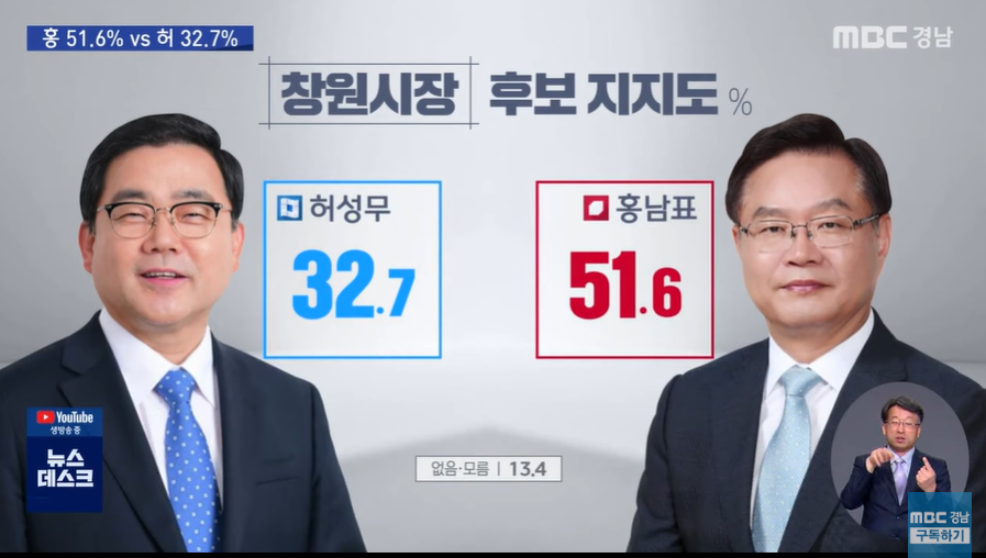 창원시장 후보 허성문 홍남표 여론조사 결과 정리(5/18)