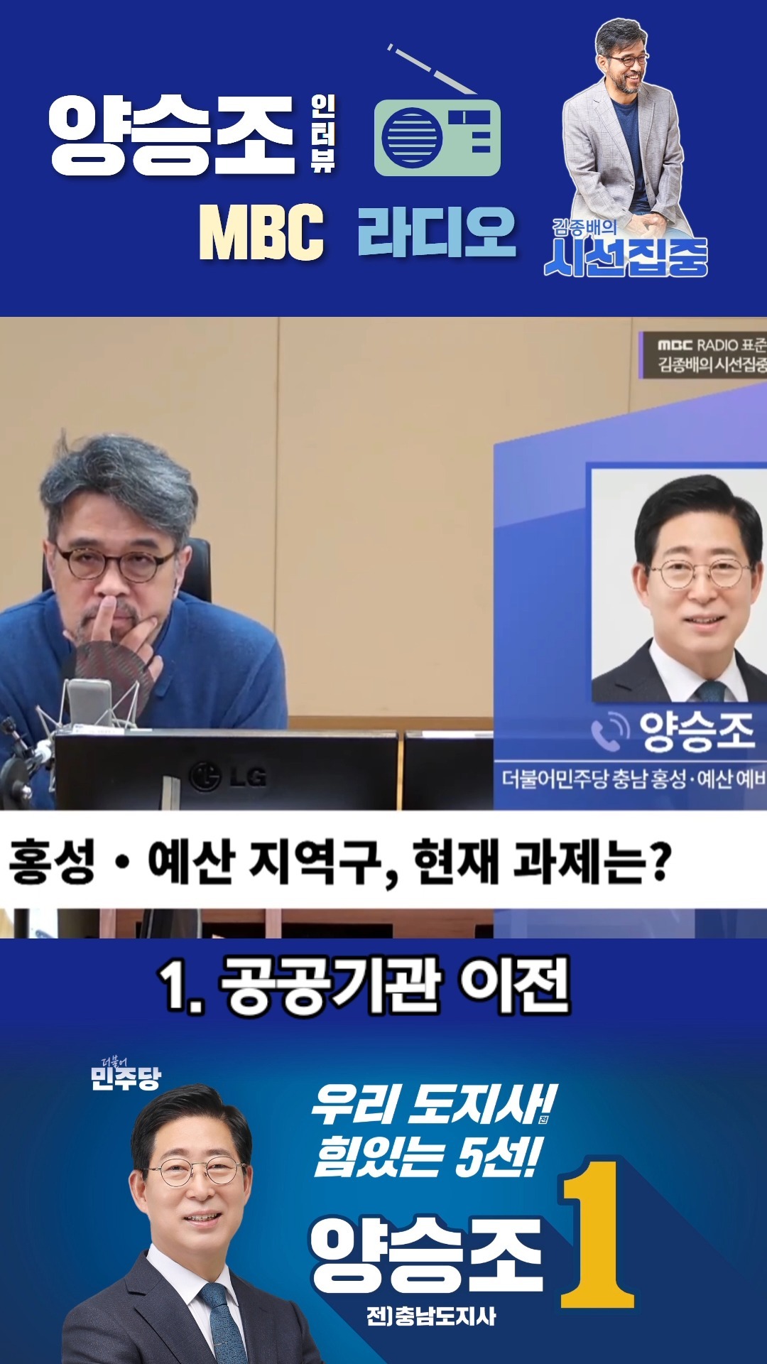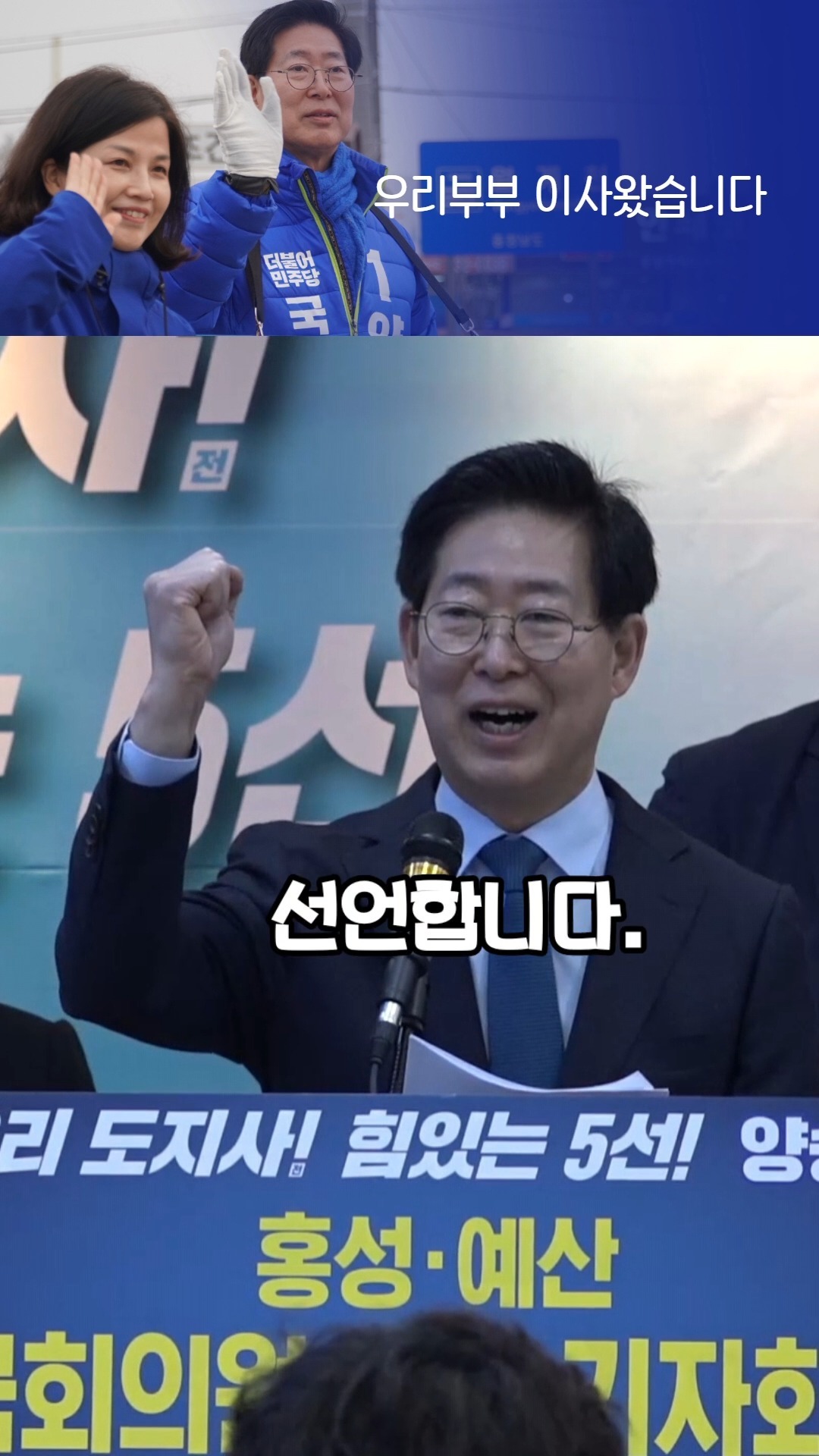 양승조 후보는 홍성·예산 지역구에 대한 강한 연고를 강조하며 이 지역에서 정치를 마감하겠다는 의지를 밝혔습니다2. 그는 충남대학교 분교, 명지병원 신설, 도립미술관 등의 사업은 도지사 시절 그림을 그려놨던 사업이라며 예산·홍성 주민들이 선택해 주길 바랐습니다.