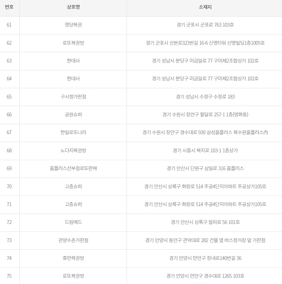 60 복권명당(광주시청점) 경기 광주시 회안대로 900 로얄프라자 115호