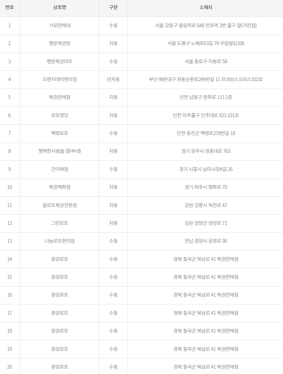 20 중앙로또 수동 경북 칠곡군 북삼로 41 복권판매점