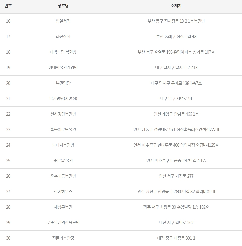 18 대박드림 복권방 부산 북구 효열로 195 유림아파트 상가동 107호
