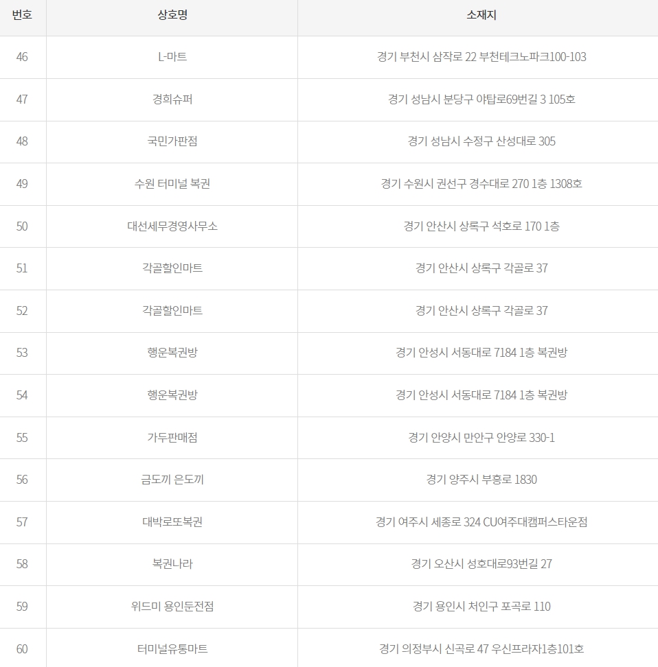 54 행운복권방 경기 안성시 서동대로 7184 1층 복권방