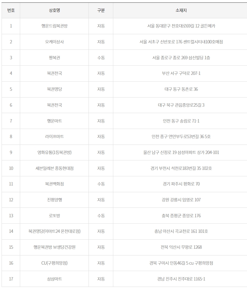 32 종합복권 경기 성남시 분당구 판교로 700 상가동 109호 (야탑동, 분당테크노파크)