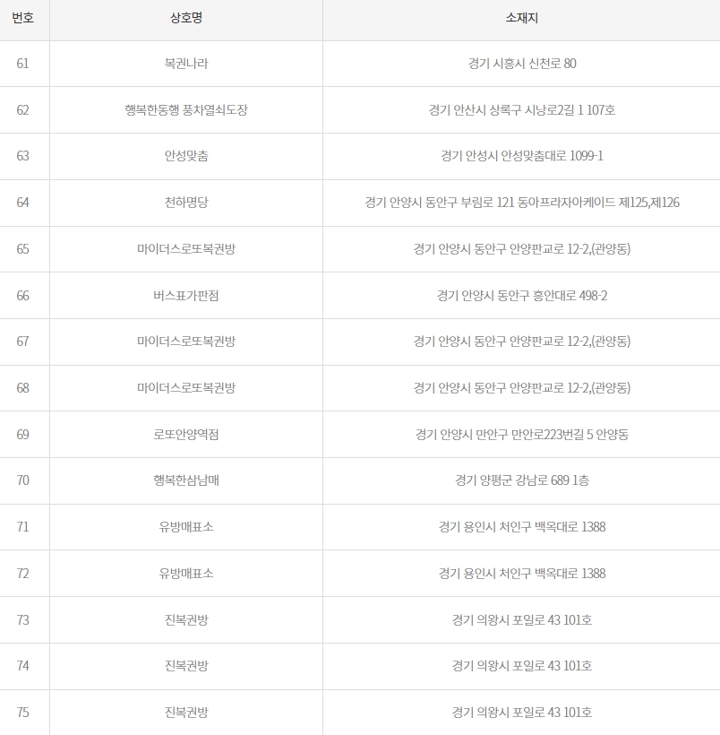 65 마이더스로또복권방 경기 안양시 동안구 안양판교로 12-2,(관양동)