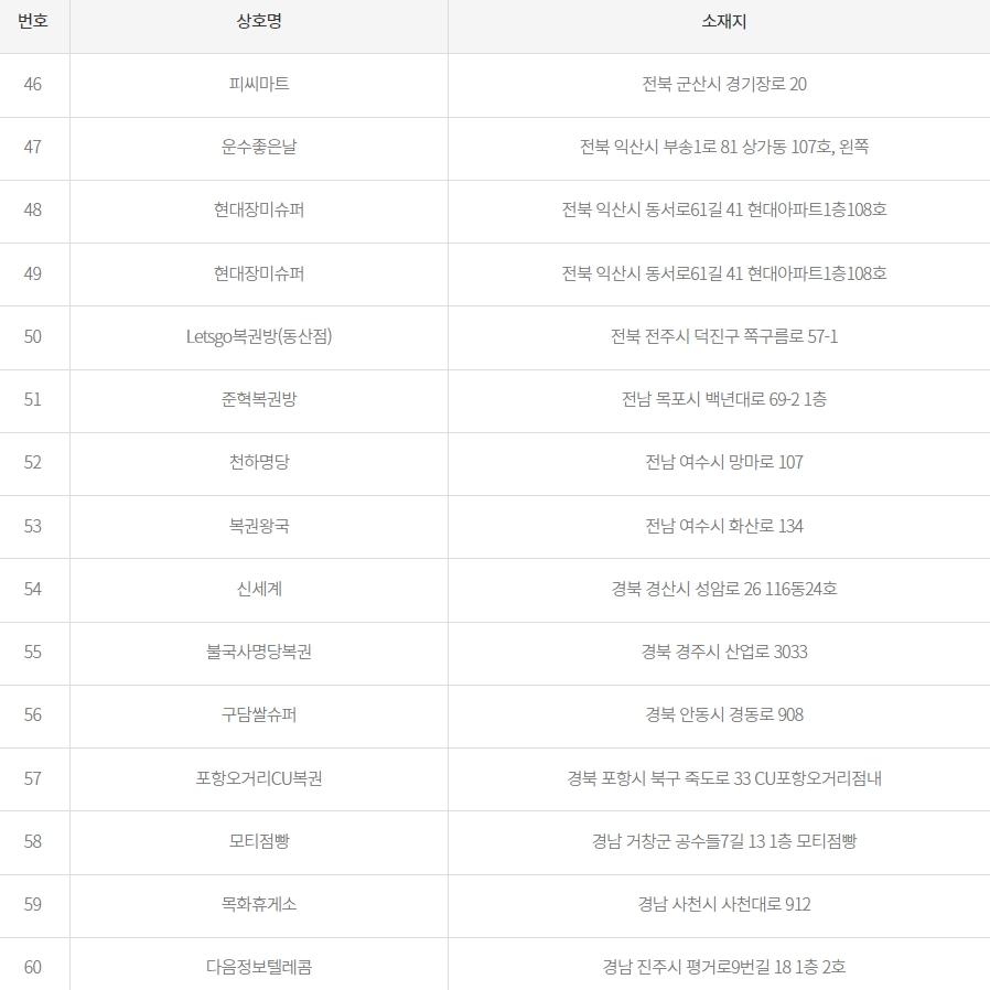 21 영희복권방 울산 동구 진성8길 53 동해연립주택 무주슈퍼 내