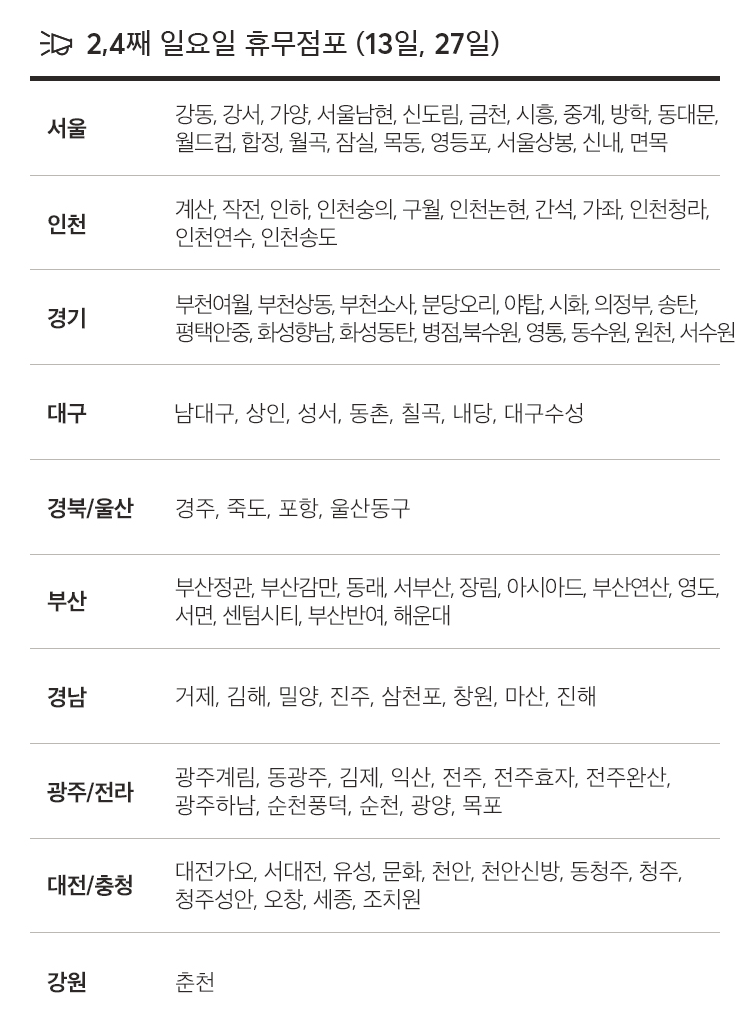 11월 14일, 11월 28일 휴무 - 영주 홈플러스, 논산 홈플러스